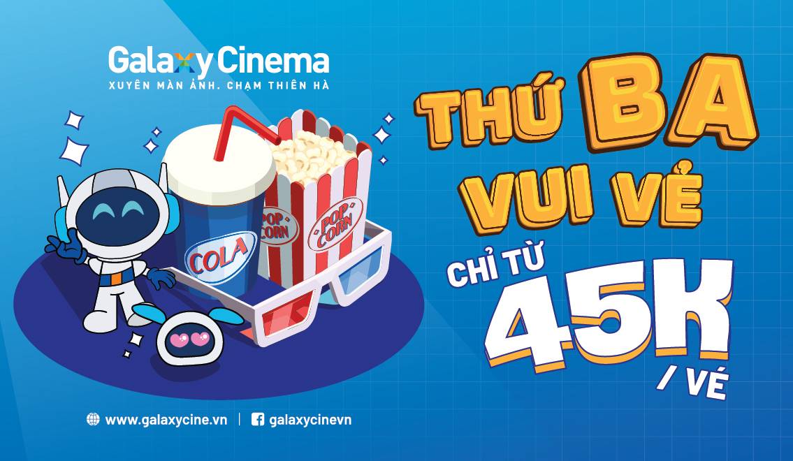 - Ưu đãi 45.000đ/vé 2D áp dụng tại rạp: Galaxy Aeon Huế, Galaxy Aeon Tân An.