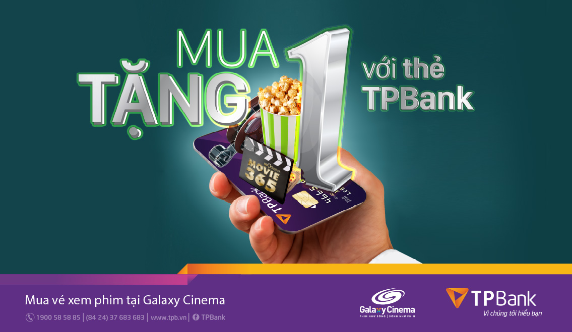 Theo đó, vào Thứ 6 hàng tuần, các Stars hiện đang sở hữu thẻ quốc tế TPBank (Visa hoặc Mastercard) và thanh toán bằng thẻ TPBank tại các rạp Galaxy Cinema trên toàn quốc khi MUA 1 VÉ SẼ ĐƯỢC TẶNG 1 VÉ XEM PHIM.