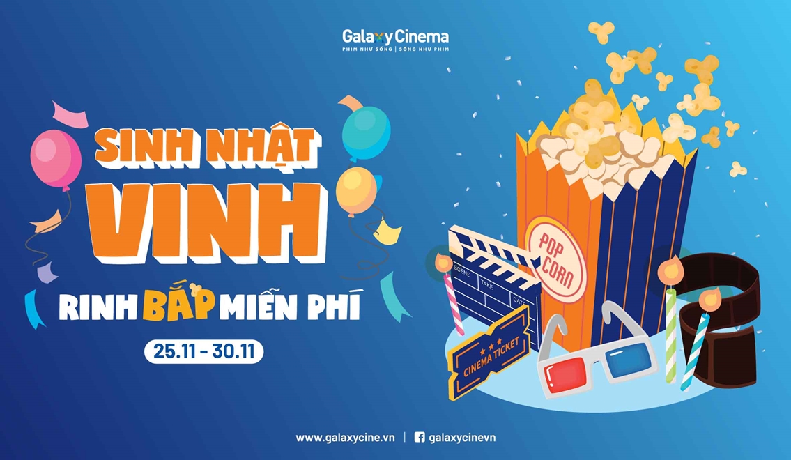 Không chỉ được miễn phí bắp, nhấn mạnh luôn là ai trùng ngày sinh nhật với Galaxy Vinh - 30.11, khi tới rạp vào ngày ấy sẽ được tặng 01 vé xem phim.
