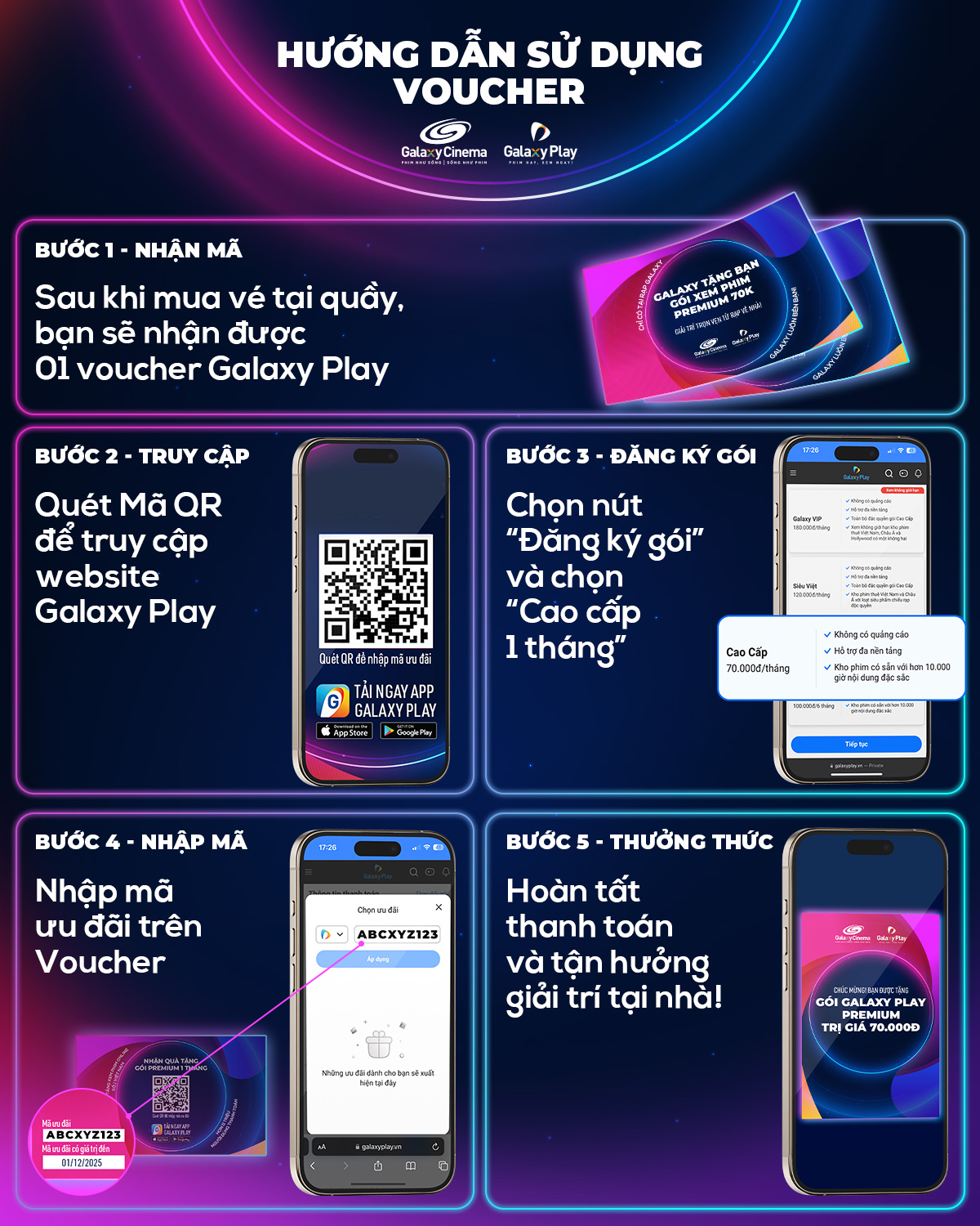 Đăng ký và sử dụng code tại website https://galaxyplay.vn/
