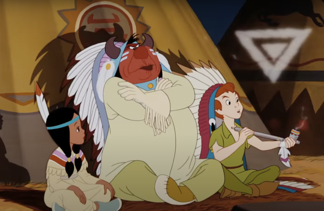 Trong phim có một tình tiết gây tranh cãi đó là khi Wendy và những người anh của cô đến thăm một bộ tộc da đỏ ở Neverland, các cậu bé đã hỏi một câu được cho là hoàn toàn mang tính phân biệt chủng tộc: Điều gì làm cho người đàn ông da đỏ có màu đỏ?